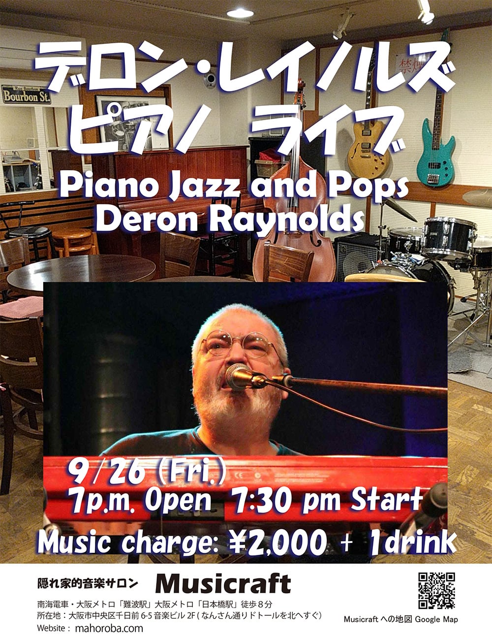 Musicians:Piano.Vo.Deron Raynolds playing Jazz and American Pops 70’~80’s
