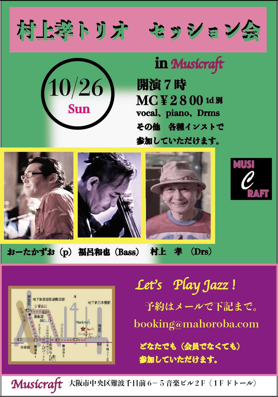 To book/attend a jazz/jam by Osaka musicians, please fill out this form.