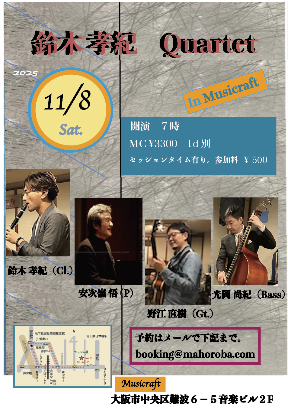 Staurday, November 8, 2025 Takanori Suzuki Quartet Jazz Live