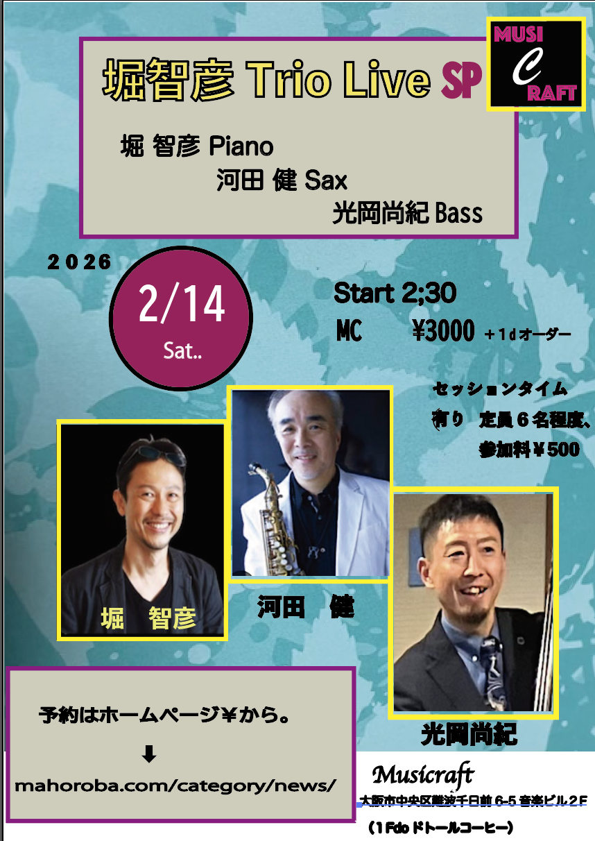 Open: 14:00. Start: 14:30. Music charge: JPY3,500(only in cash) 1 drink(JPY500) order required.